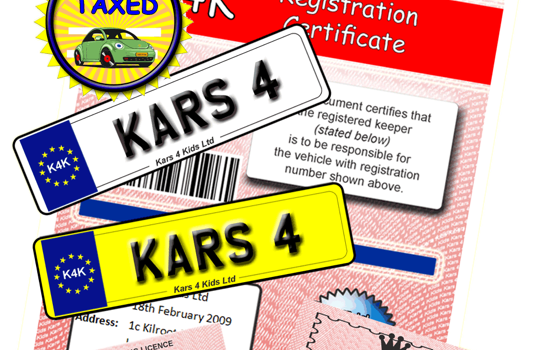 Here is KidsElectricCars.co.uk’s review of Childrens Complete Personalised Drivers License Pack. Get all your personalised driving documents with this Children’s Complete Personalised Drivers License Pack If you want to add the final touches to your childs ride on gift then the Kids Complete Personalised Drivers License Pack is perfect for making the gift extra special. You will have everything for making your Electric Ride On Toy your very own including white and yellow license plates, driving license and tax disc all in weatherproof vinyl, so everything stays safe. The personalised plates allow you to choose up to 7 characters, while also being able to add all of the regal details to the driving license. Kids Complete Personalised Drivers License Pack Details: License Plate Tax Disc 1x White Number Plate 1x Yellow Number Plate 7 Characters for Number Plates Please include above what you would like on your number plates, the child’s name & date of birth, and an address to use on the Registration Document.
